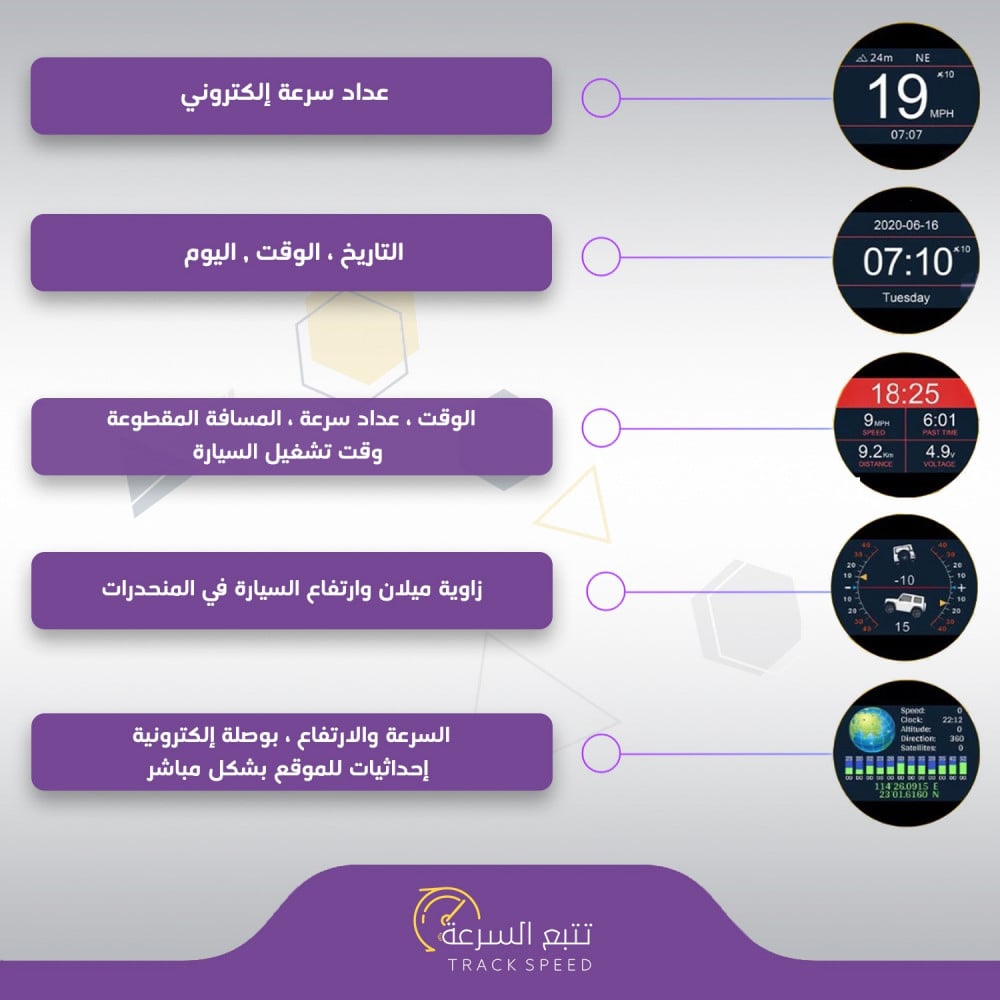 - High accuracy speed tracking using GPS technology.